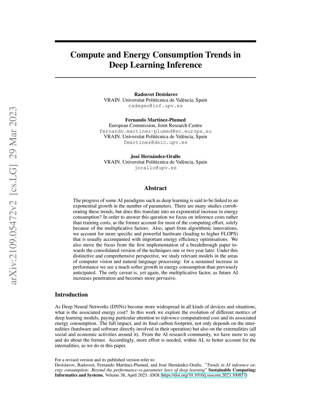 Compute and Energy Consumption Trends in Deep Learning Inference