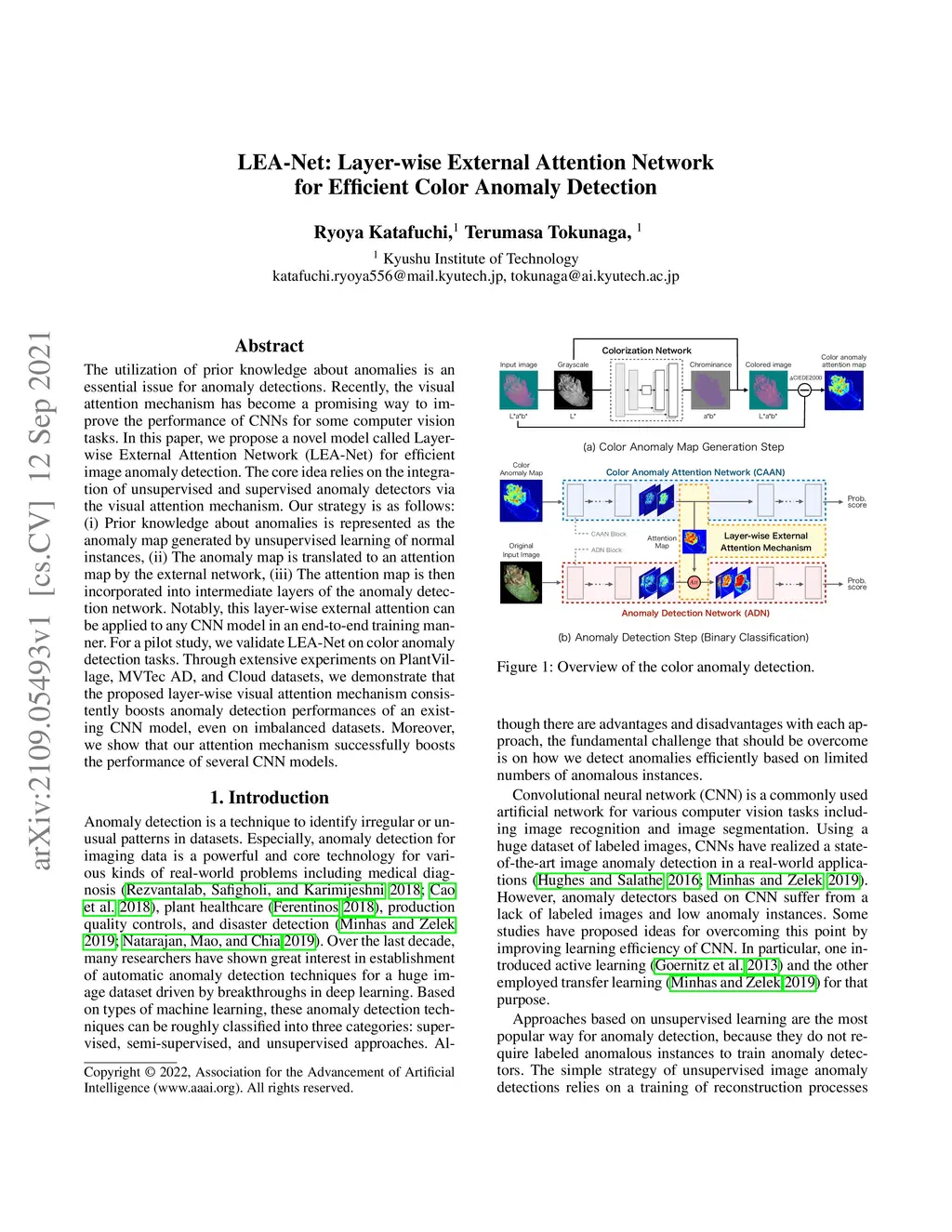 The utilization of prior knowledge about anomalies is an essential issue for anomaly detections. Recently, the visual attention mechanism has become a promising way to improve the performance of CNNs for some computer vision tasks. In this paper, we propose a novel model called Layer-wise External Attention Network (LEA-Net) for efficient image anomaly detection. The core idea relies on the integration of unsupervised and supervised anomaly detectors via the visual attention mechanism. Our strategy is as follows: (i) Prior knowledge about anomalies is represented as the anomaly map generated by unsupervised learning of normal instances, (ii) The anomaly map is translated to an attention map by the external network, (iii) The attention map is then incorporated into intermediate layers of the anomaly detection network. Notably, this layer-wise external attention can be applied to any CNN model in an end-to-end training manner. For a pilot study, we validate LEA-Net on color anomaly detection tasks. Through extensive experiments on PlantVillage, MVTec AD, and Cloud datasets, we demonstrate that the proposed layer-wise visual attention mechanism consistently boosts anomaly detection performances of an existing CNN model, even on imbalanced datasets. Moreover, we show that our attention mechanism successfully boosts the performance of several CNN models.