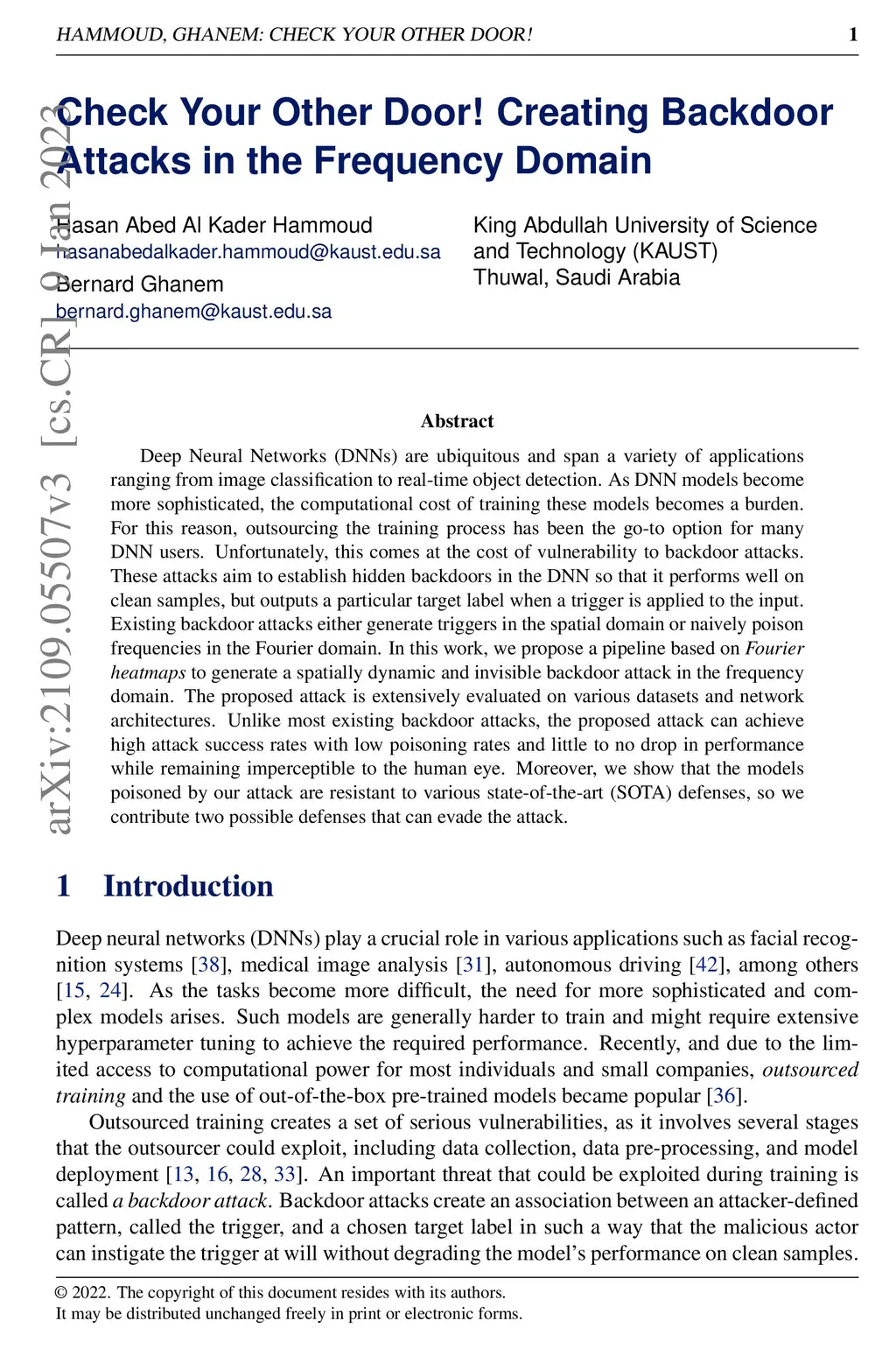 Check Your Other Door! Creating Backdoor Attacks in the Frequency Domain