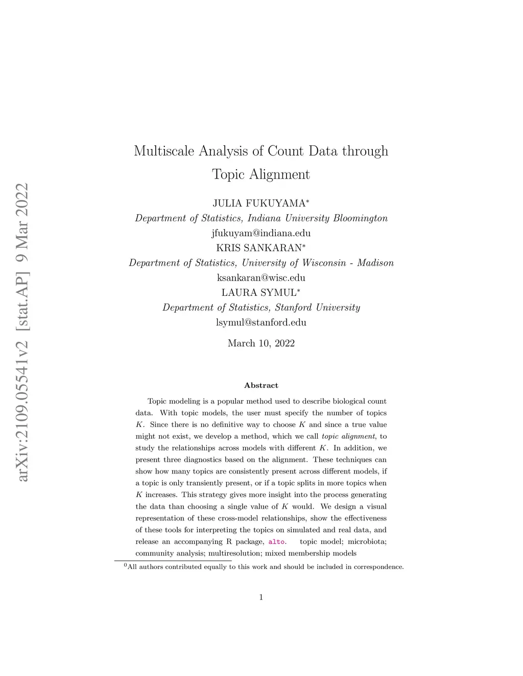 Multiscale Analysis of Count Data through Topic Alignment