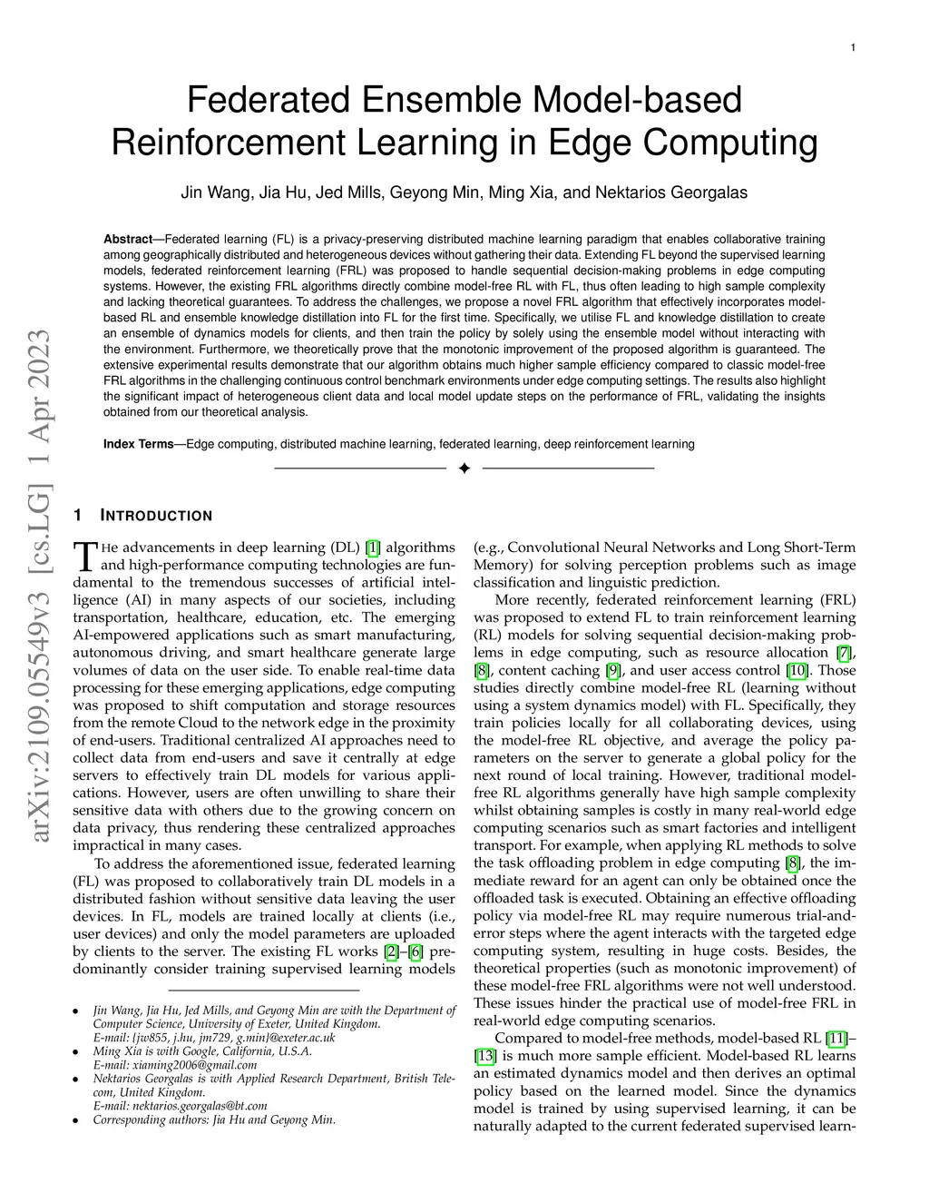 Federated Ensemble Model-based Reinforcement Learning in Edge Computing