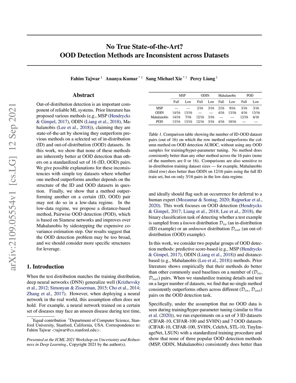 Out-of-distribution detection is an important component of reliable ML systems. Prior literature has proposed various methods (e.g., MSP (Hendrycks & Gimpel, 2017), ODIN (Liang et al., 2018), Mahalanobis (Lee et al., 2018)), claiming they are state-of-the-art by showing they outperform previous methods on a selected set of in-distribution (ID) and out-of-distribution (OOD) datasets. In this work, we show that none of these methods are inherently better at OOD detection than others on a standardized set of 16 (ID, OOD) pairs. We give possible explanations for these inconsistencies with simple toy datasets where whether one method outperforms another depends on the structure of the ID and OOD datasets in question. Finally, we show that a method outperforming another on a certain (ID, OOD) pair may not do so in a low-data regime. In the low-data regime, we propose a distance-based method, Pairwise OOD detection (POD), which is based on Siamese networks and improves over Mahalanobis by sidestepping the expensive covariance estimation step. Our results suggest that the OOD detection problem may be too broad, and we should consider more specific structures for leverage.