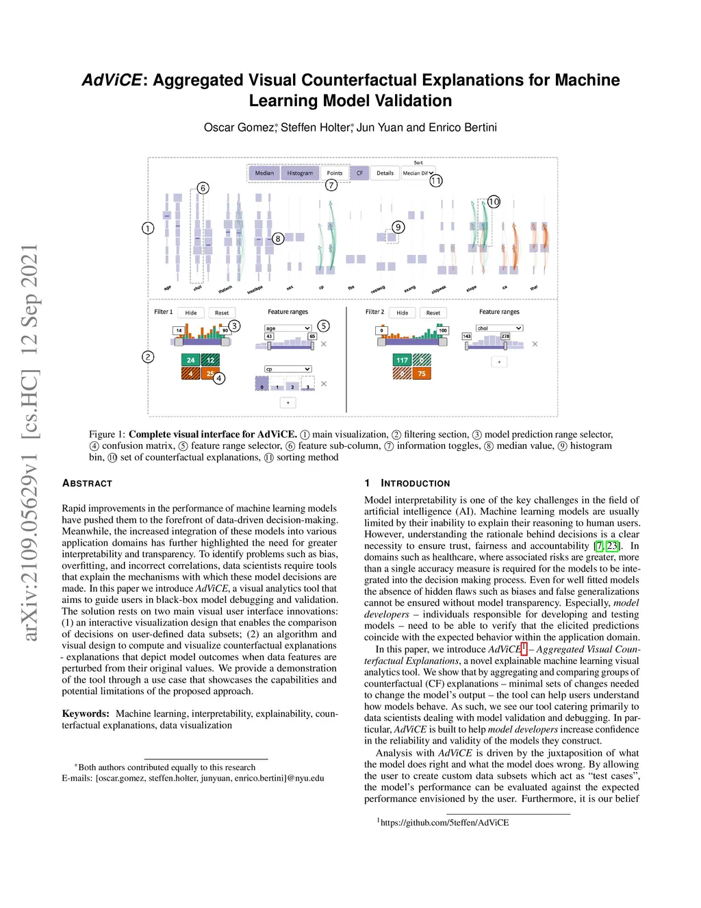 Rapid improvements in the performance of machine learning models have pushed them to the forefront of data-driven decision-making. Meanwhile, the increased integration of these models into various application domains has further highlighted the need for greater interpretability and transparency. To identify problems such as bias, overfitting, and incorrect correlations, data scientists require tools that explain the mechanisms with which these model decisions are made. In this paper we introduce AdViCE, a visual analytics tool that aims to guide users in black-box model debugging and validation. The solution rests on two main visual user interface innovations: (1) an interactive visualization design that enables the comparison of decisions on user-defined data subsets; (2) an algorithm and visual design to compute and visualize counterfactual explanations - explanations that depict model outcomes when data features are perturbed from their original values. We provide a demonstration of the tool through a use case that showcases the capabilities and potential limitations of the proposed approach.