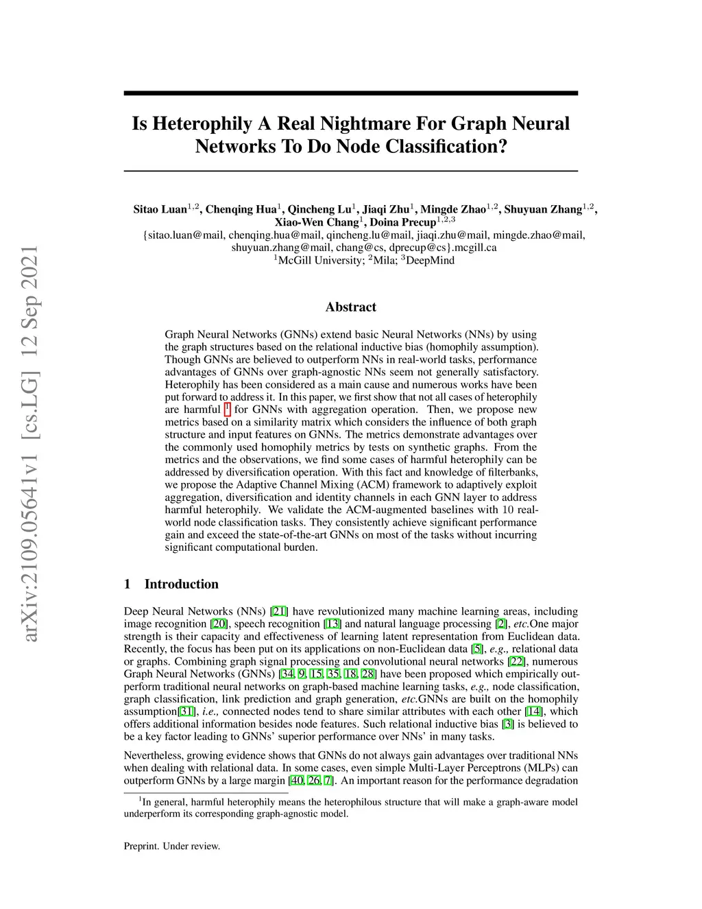 Graph Neural Networks (GNNs) extend basic Neural Networks (NNs) by using the graph structures based on the relational inductive bias (homophily assumption). Though GNNs are believed to outperform NNs in real-world tasks, performance advantages of GNNs over graph-agnostic NNs seem not generally satisfactory. Heterophily has been considered as a main cause and numerous works have been put forward to address it. In this paper, we first show that not all cases of heterophily are harmful for GNNs with aggregation operation. Then, we propose new metrics based on a similarity matrix which considers the influence of both graph structure and input features on GNNs. The metrics demonstrate advantages over the commonly used homophily metrics by tests on synthetic graphs. From the metrics and the observations, we find some cases of harmful heterophily can be addressed by diversification operation. With this fact and knowledge of filterbanks, we propose the Adaptive Channel Mixing (ACM) framework to adaptively exploit aggregation, diversification and identity channels in each GNN layer to address harmful heterophily. We validate the ACM-augmented baselines with 10 real-world node classification tasks. They consistently achieve significant performance gain and exceed the state-of-the-art GNNs on most of the tasks without incurring significant computational burden.