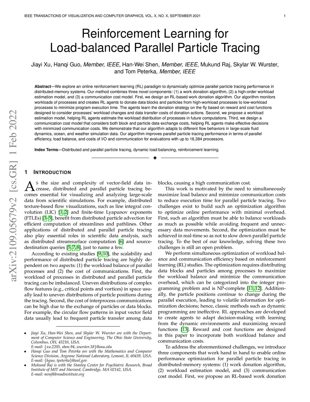 Reinforcement Learning for Load-balanced Parallel Particle Tracing