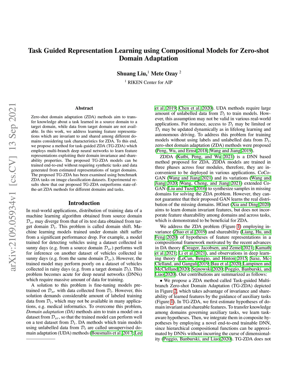 Task Guided Compositional Representation Learning for ZDA