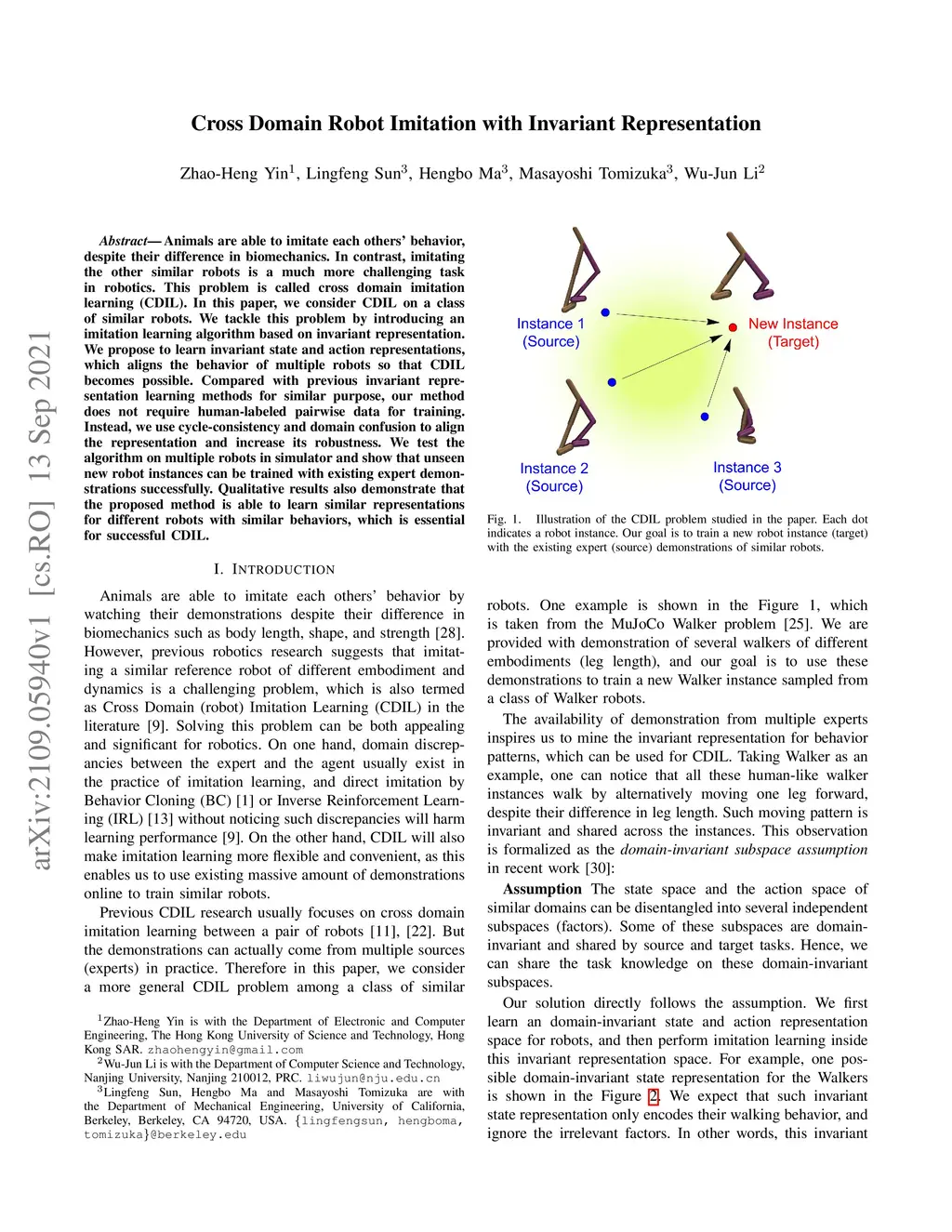 Cross Domain Robot Imitation with Invariant Representation