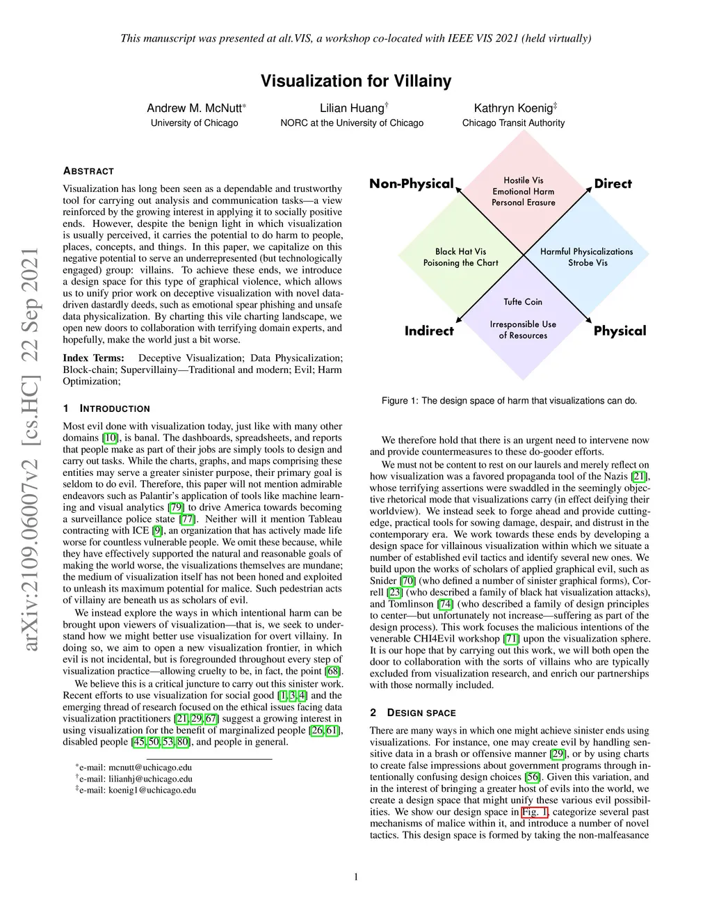 Visualization has long been seen as a dependable and trustworthy tool for carrying out analysis and communication tasks -- a view reinforced by the growing interest in applying it to socially positive ends. However, despite the benign light in which visualization is usually perceived, it carries the potential to do harm to people, places, concepts, and things. In this paper, we capitalize on this negative potential to serve an underrepresented (but technologically engaged) group: villains. To achieve these ends, we introduce a design space for this type of graphical violence, which allows us to unify prior work on deceptive visualization with novel data-driven dastardly deeds, such as emotional spear phishing and unsafe data physicalization. By charting this vile charting landscape, we open new doors to collaboration with terrifying domain experts, and hopefully, make the world just a bit worse.