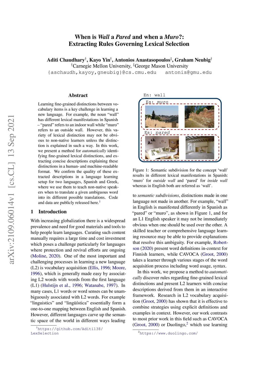 When is Wall a Pared and when a Muro? -- Extracting Rules Governing