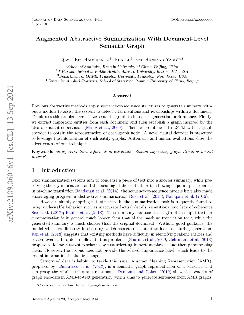 Augmented Abstractive Summarization With Document-LevelSemantic Graph