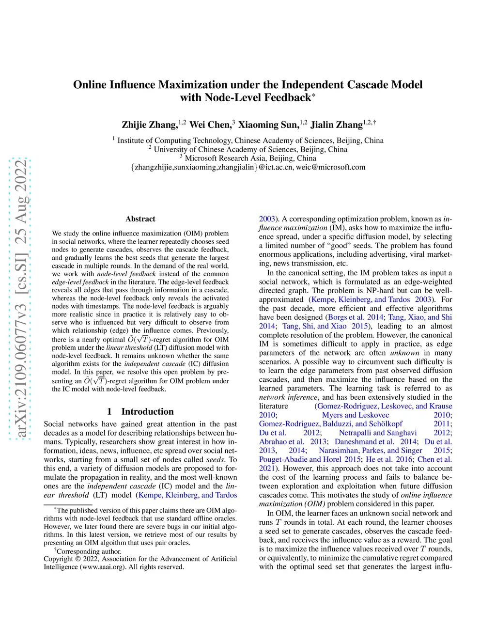 We study the online influence maximization (OIM) problem in social networks, where the learner repeatedly chooses seed nodes to generate cascades, observes the cascade feedback, and gradually learns the best seeds that generate the largest cascade in multiple rounds. In the demand of the real world, we work with node-level feedback instead of the common edge-level feedback in the literature. The edge-level feedback reveals all edges that pass through information in a cascade, whereas the node-level feedback only reveals the activated nodes with timestamps. The node-level feedback is arguably more realistic since in practice it is relatively easy to observe who is influenced but very difficult to observe from which relationship (edge) the influence comes. Previously, there is a nearly optimal -regret algorithm for OIM problem under the linear threshold (LT) diffusion model with node-level feedback. It remains unknown whether the same algorithm exists for the independent cascade (IC) diffusion model. In this paper, we resolve this open problem by presenting an -regret algorithm for OIM problem under the IC model with node-level feedback.