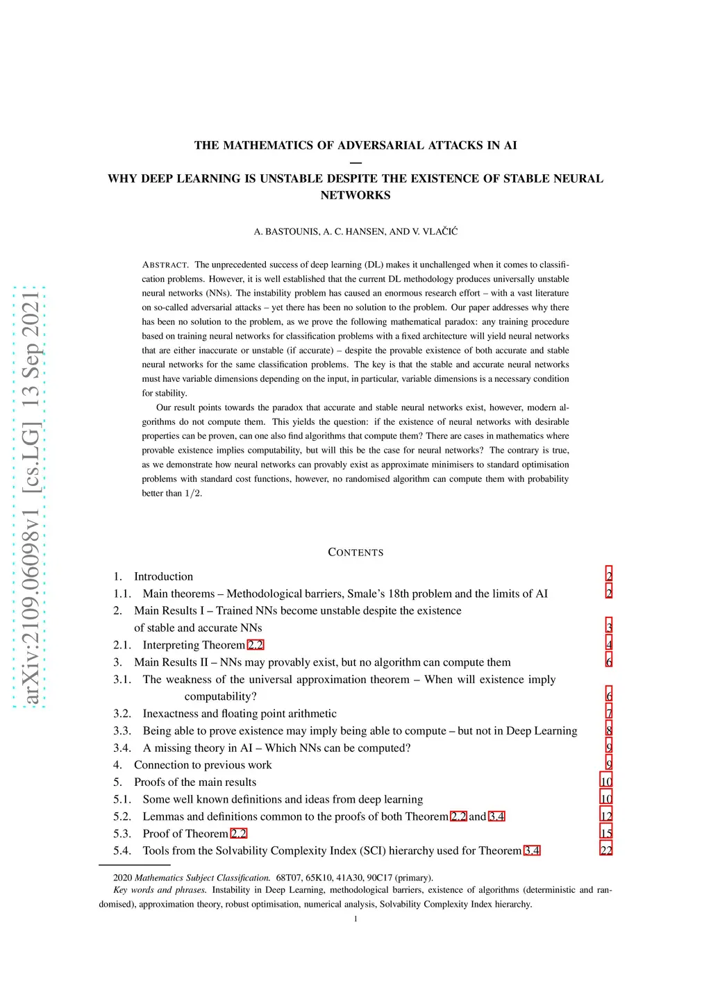 The mathematics of adversarial attacks in AI -- Why deep learning is unstable despite the existence of stable neural networks