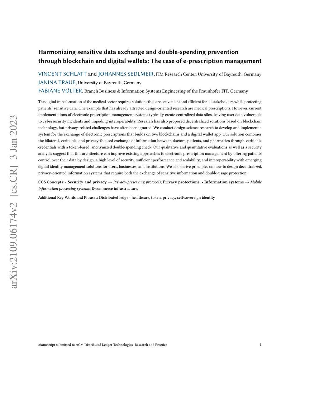 The digital transformation of the medical sector requires solutions that are convenient and efficient for all stakeholders while protecting patients' sensitive data. One example that has already attracted design-oriented research are medical prescriptions. However, current implementations of electronic prescription management systems typically create centralized data silos, leaving user data vulnerable to cybersecurity incidents and impeding interoperability. Research has also proposed decentralized solutions based on blockchain technology, but privacy-related challenges have often been ignored. We conduct design science research to develop and implement a system for the exchange of electronic prescriptions that builds on two blockchains and a digital wallet app. Our solution combines the bilateral, verifiable, and privacy-focused exchange of information between doctors, patients, and pharmacies through verifiable credentials with a token-based, anonymized double-spending check. Our qualitative and quantitative evaluations as well as a security analysis suggest that this architecture can improve existing approaches to electronic prescription management by offering patients control over their data by design, a high level of security, sufficient performance and scalability, and interoperability with emerging digital identity management solutions for users, businesses, and institutions. We also derive principles on how to design decentralized, privacy-oriented information systems that require both the exchange of sensitive information and double-usage protection.