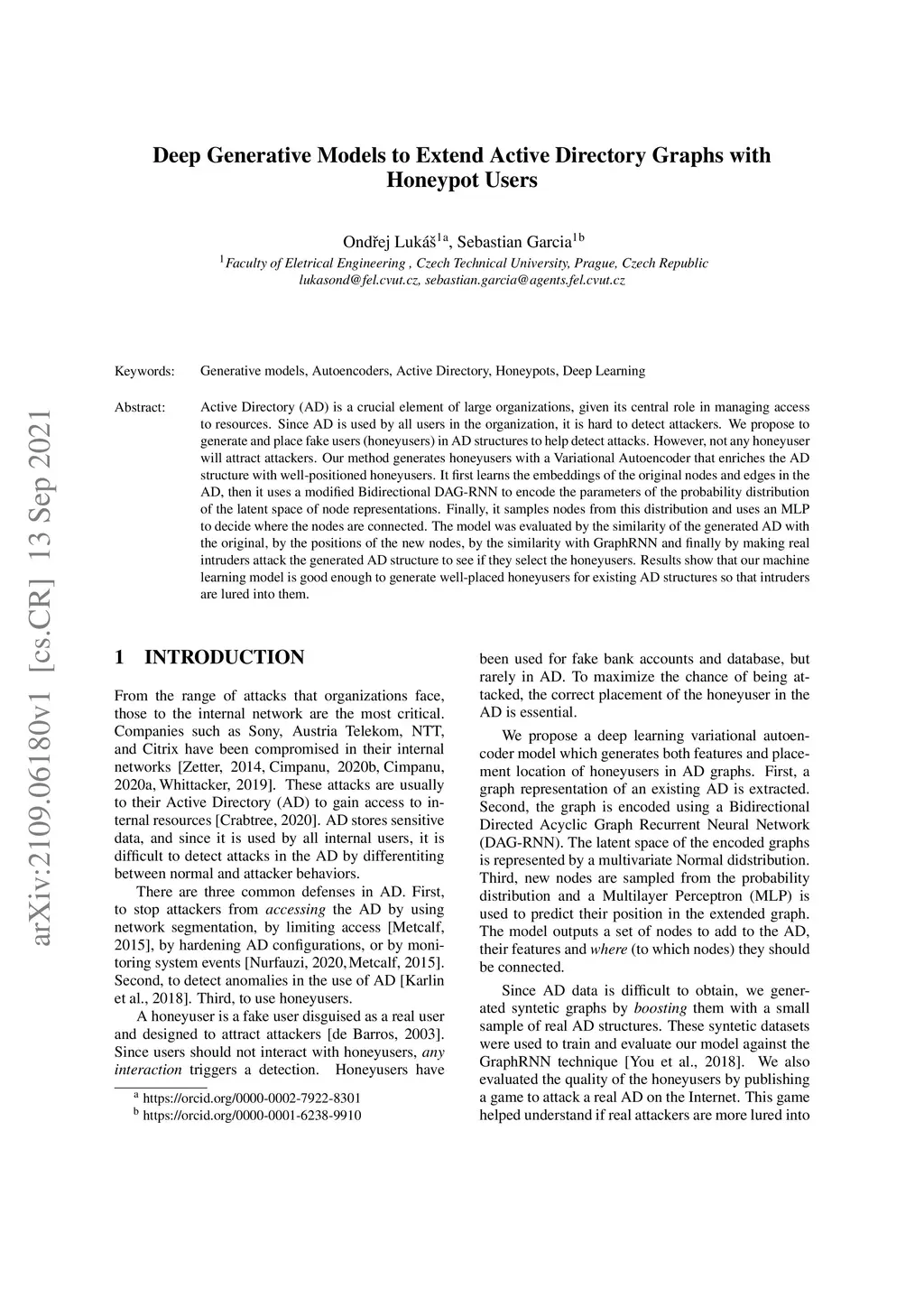Deep Generative Models to Extend Active Directory Graphs with Honeypot