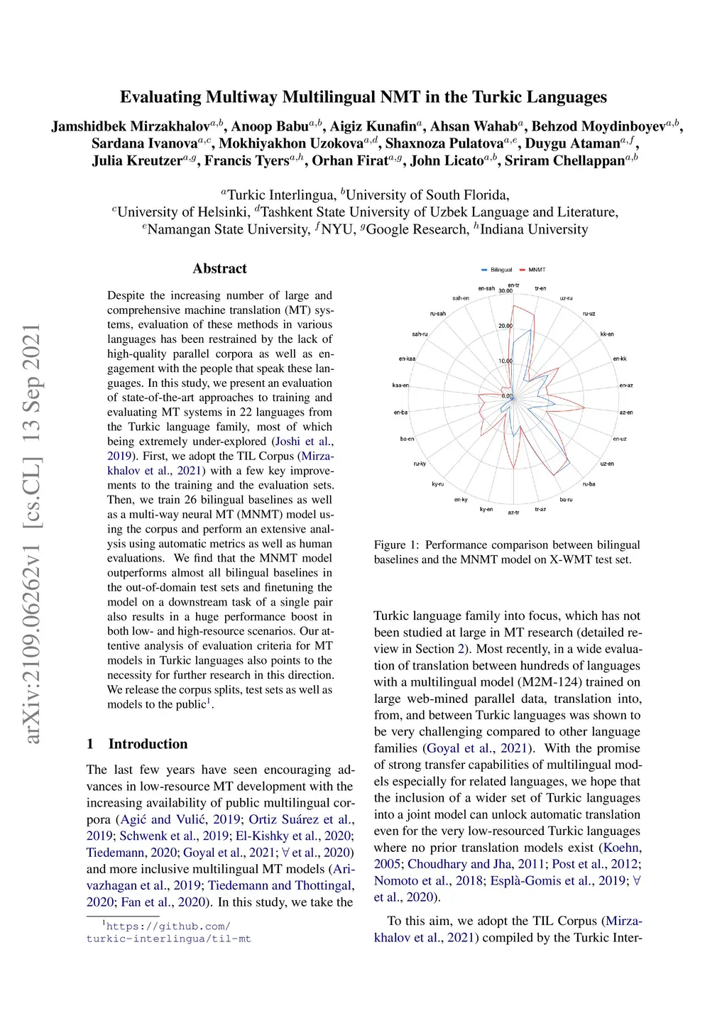 Despite the increasing number of large and comprehensive machine translation (MT) systems, evaluation of these methods in various languages has been restrained by the lack of high-quality parallel corpora as well as engagement with the people that speak these languages. In this study, we present an evaluation of state-of-the-art approaches to training and evaluating MT systems in 22 languages from the Turkic language family, most of which being extremely under-explored. First, we adopt the TIL Corpus with a few key improvements to the training and the evaluation sets. Then, we train 26 bilingual baselines as well as a multi-way neural MT (MNMT) model using the corpus and perform an extensive analysis using automatic metrics as well as human evaluations. We find that the MNMT model outperforms almost all bilingual baselines in the out-of-domain test sets and finetuning the model on a downstream task of a single pair also results in a huge performance boost in both low- and high-resource scenarios. Our attentive analysis of evaluation criteria for MT models in Turkic languages also points to the necessity for further research in this direction. We release the corpus splits, test sets as well as models to the public.
