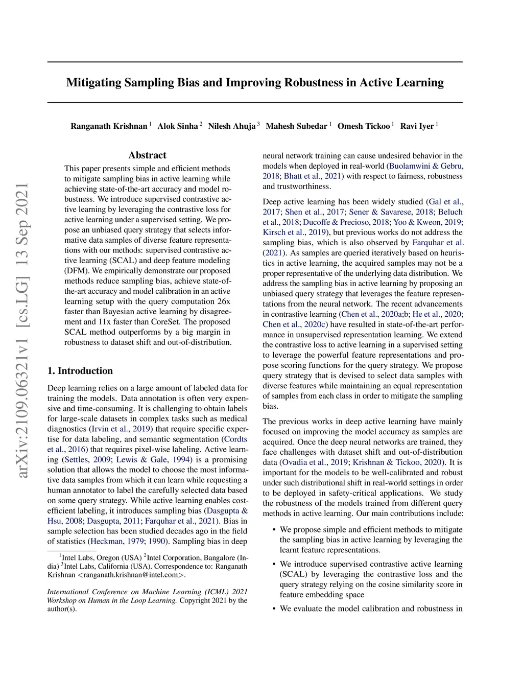 This paper presents simple and efficient methods to mitigate sampling bias in active learning while achieving state-of-the-art accuracy and model robustness. We introduce supervised contrastive active learning by leveraging the contrastive loss for active learning under a supervised setting. We propose an unbiased query strategy that selects informative data samples of diverse feature representations with our methods: supervised contrastive active learning (SCAL) and deep feature modeling (DFM). We empirically demonstrate our proposed methods reduce sampling bias, achieve state-of-the-art accuracy and model calibration in an active learning setup with the query computation 26x faster than Bayesian active learning by disagreement and 11x faster than CoreSet. The proposed SCAL method outperforms by a big margin in robustness to dataset shift and out-of-distribution.