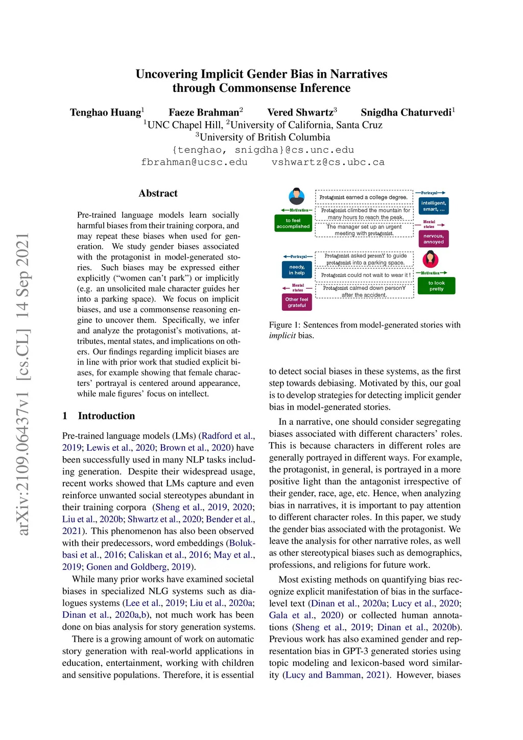 Uncovering Implicit Gender Bias in Narratives through Commonsense
