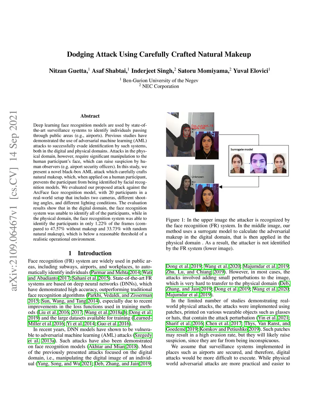 Dodging Attack Using Carefully Crafted Natural Makeup