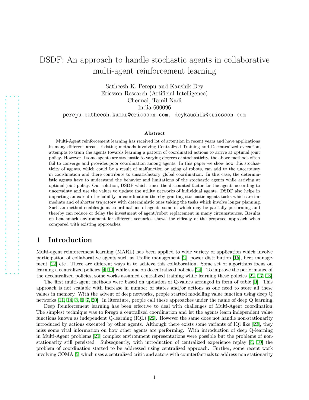 DSDF: An approach to handle stochastic agents in collaborative