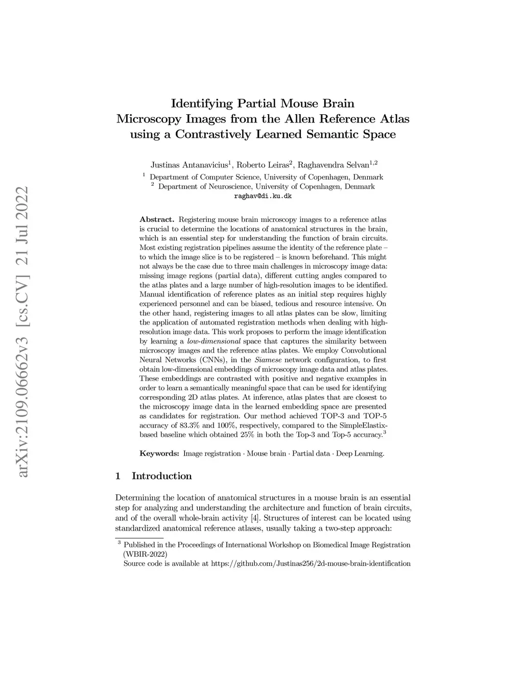 Identifying partial mouse brain microscopy images from Allen reference