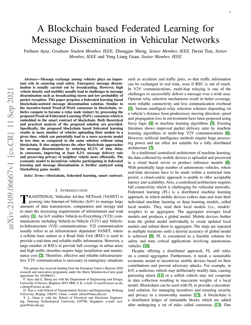 A Blockchain based Federated Learning for Message Dissemination in