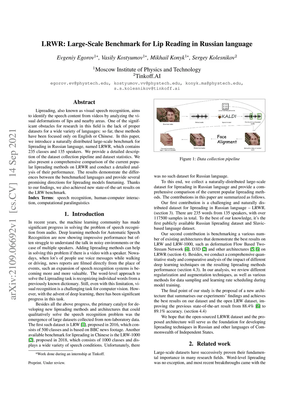 LRWR: Large-Scale Benchmark for Lip Reading in Russian language