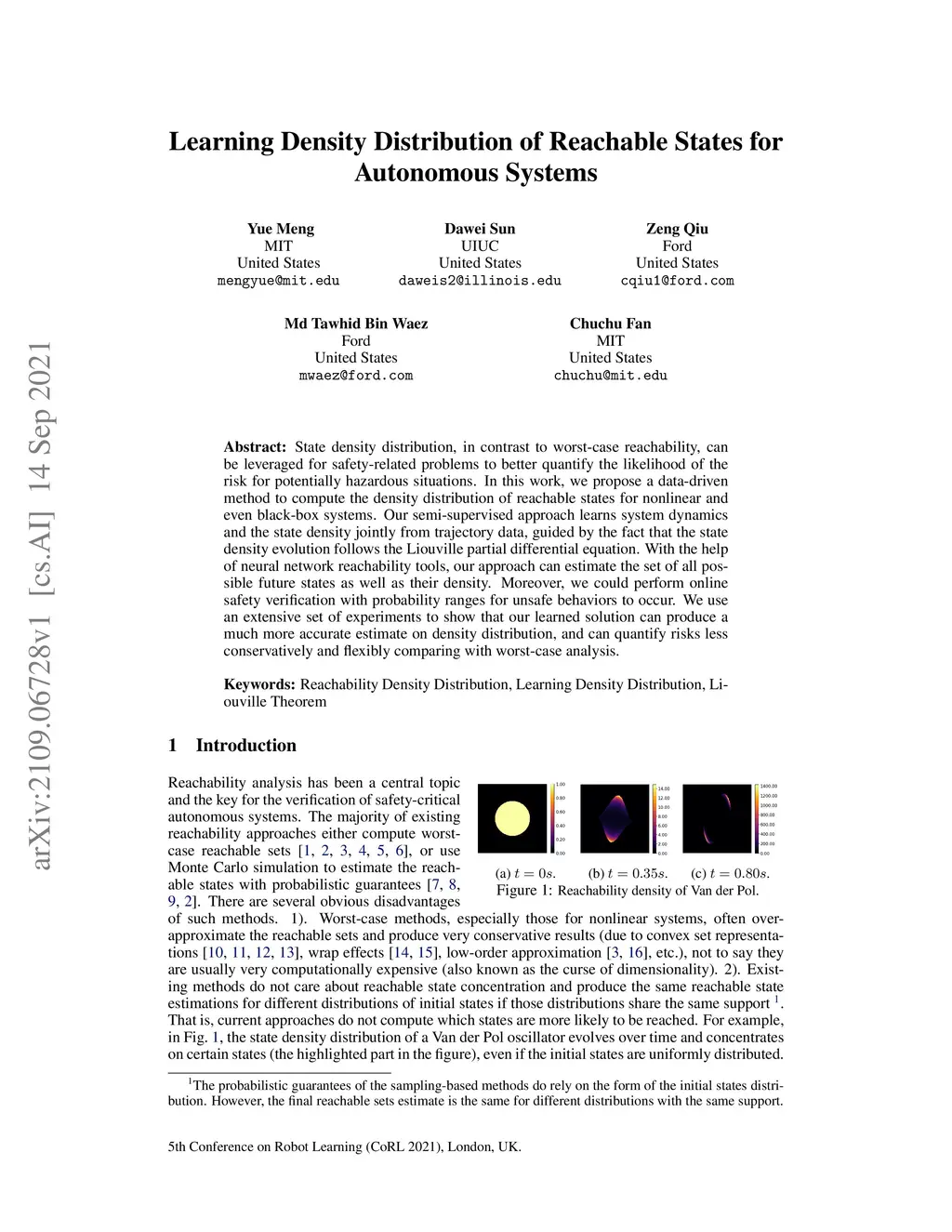 Learning Density Distribution of Reachable States for Autonomous Systems