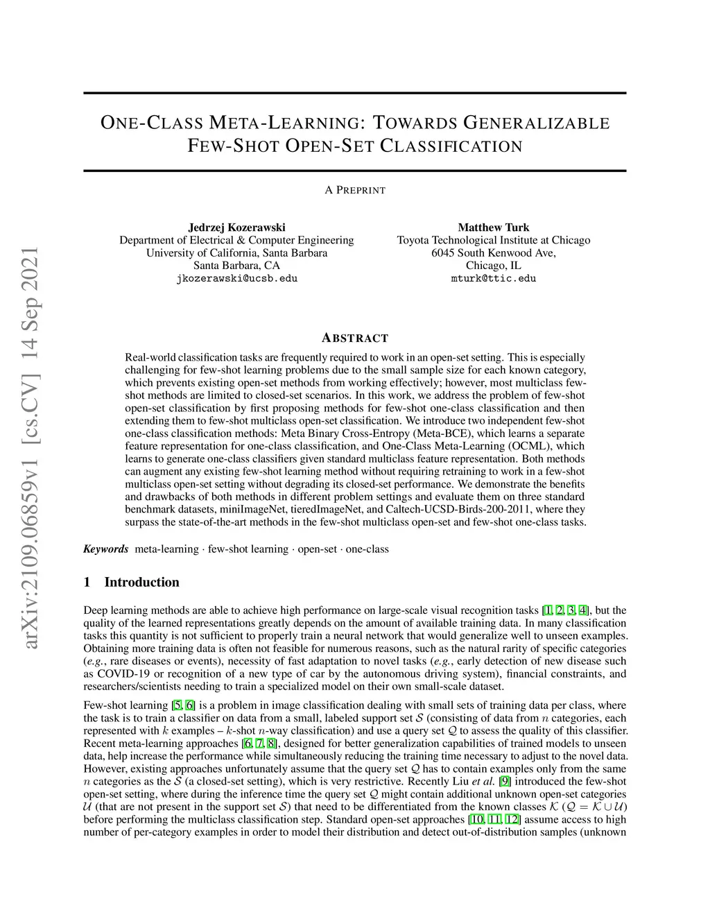 One-Class Meta-Learning: Towards Generalizable Few-Shot Open-Set