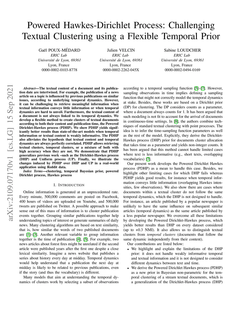 Powered Hawkes-Dirichlet Process: Challenging Textual Clustering using a