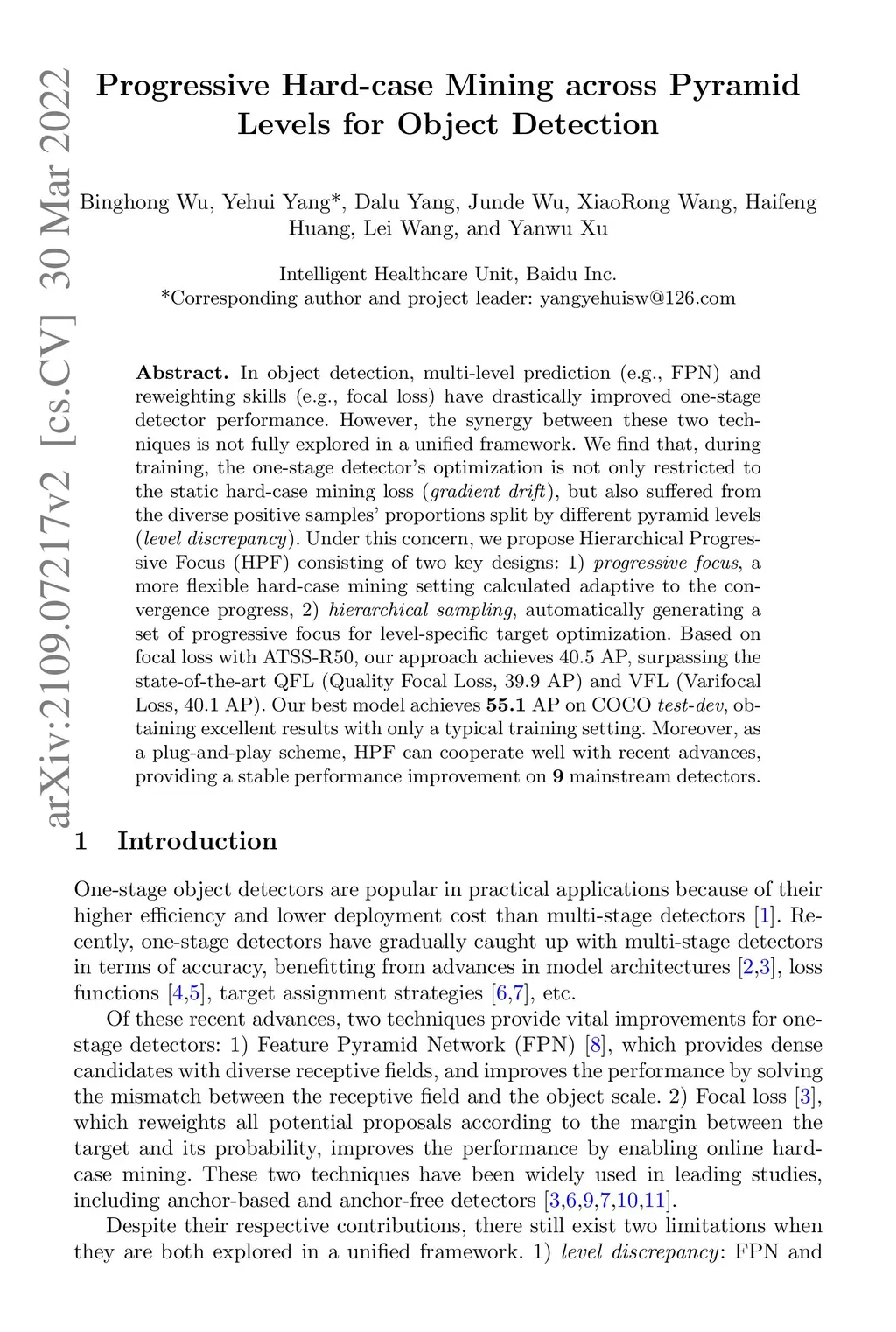 Progressive Hard-case Mining across Pyramid Levels for Object Detection
