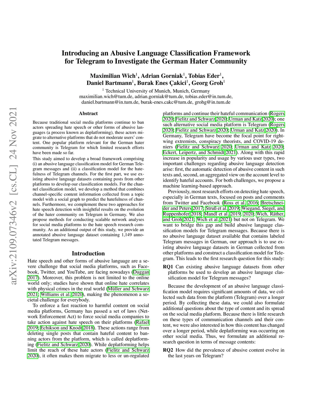 Introducing an Abusive Language Classification Framework for Telegram to