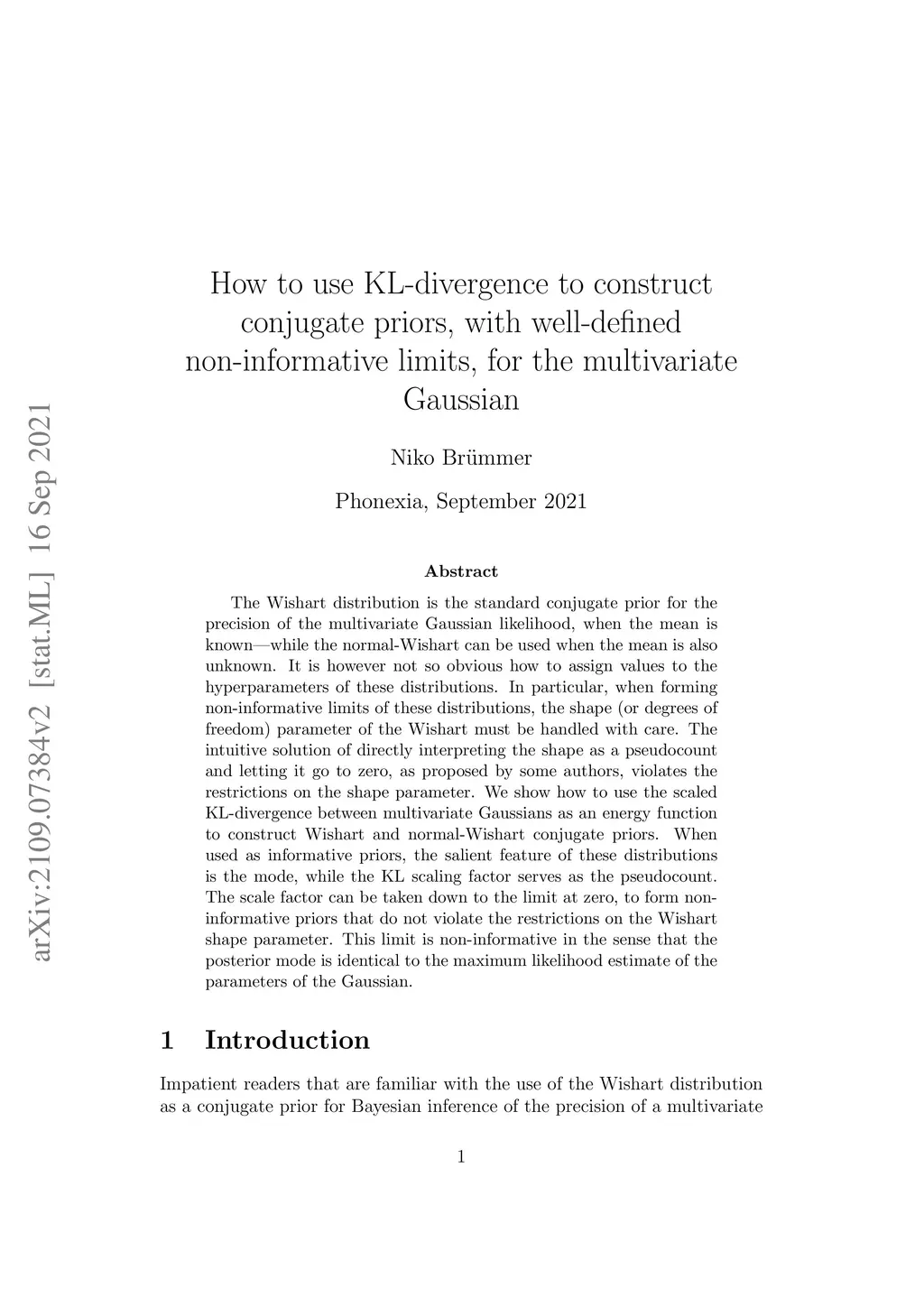 The Wishart distribution is the standard conjugate prior for the precision of the multivariate Gaussian likelihood, when the mean is known -- while the normal-Wishart can be used when the mean is also unknown. It is however not so obvious how to assign values to the hyperparameters of these distributions. In particular, when forming non-informative limits of these distributions, the shape (or degrees of freedom) parameter of the Wishart must be handled with care. The intuitive solution of directly interpreting the shape as a pseudocount and letting it go to zero, as proposed by some authors, violates the restrictions on the shape parameter. We show how to use the scaled KL-divergence between multivariate Gaussians as an energy function to construct Wishart and normal-Wishart conjugate priors. When used as informative priors, the salient feature of these distributions is the mode, while the KL scaling factor serves as the pseudocount. The scale factor can be taken down to the limit at zero, to form non-informative priors that do not violate the restrictions on the Wishart shape parameter. This limit is non-informative in the sense that the posterior mode is identical to the maximum likelihood estimate of the parameters of the Gaussian.