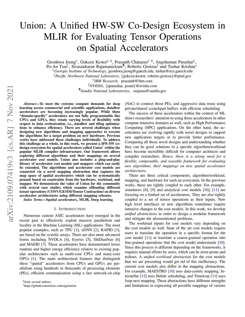 Union: A Unified HW-SW Co-Design Ecosystem in MLIR for Evaluating Tensor
