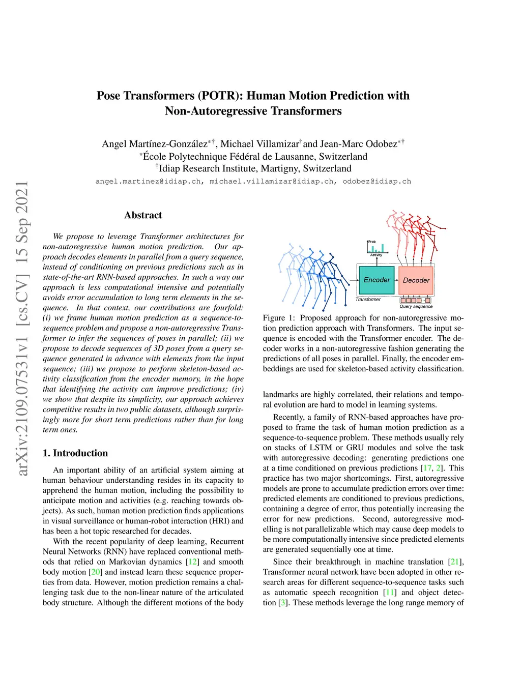 We propose to leverage Transformer architectures for non-autoregressive human motion prediction. Our approach decodes elements in parallel from a query sequence, instead of conditioning on previous predictions such as instate-of-the-art RNN-based approaches. In such a way our approach is less computational intensive and potentially avoids error accumulation to long term elements in the sequence. In that context, our contributions are fourfold: (i) we frame human motion prediction as a sequence-to-sequence problem and propose a non-autoregressive Transformer to infer the sequences of poses in parallel; (ii) we propose to decode sequences of 3D poses from a query sequence generated in advance with elements from the input sequence;(iii) we propose to perform skeleton-based activity classification from the encoder memory, in the hope that identifying the activity can improve predictions;(iv) we show that despite its simplicity, our approach achieves competitive results in two public datasets, although surprisingly more for short term predictions rather than for long term ones.