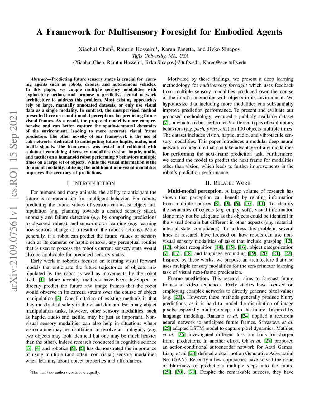 A Framework for Multisensory Foresight for Embodied Agents
