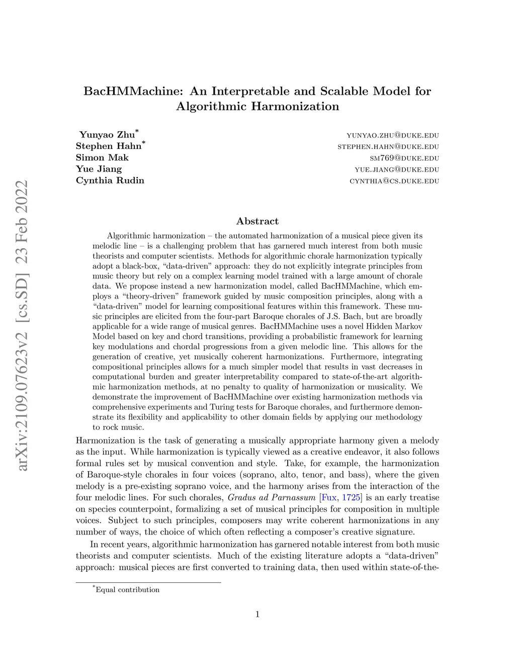 Algorithmic harmonization - the automated harmonization of a musical piece given its melodic line - is a challenging problem that has garnered much interest from both music theorists and computer scientists. One genre of particular interest is the four-part Baroque chorales of J.S. Bach. Methods for algorithmic chorale harmonization typically adopt a black-box, "data-driven" approach: they do not explicitly integrate principles from music theory but rely on a complex learning model trained with a large amount of chorale data. We propose instead a new harmonization model, called BacHMMachine, which employs a "theory-driven" framework guided by music composition principles, along with a "data-driven" model for learning compositional features within this framework. As its name suggests, BacHMMachine uses a novel Hidden Markov Model based on key and chord transitions, providing a probabilistic framework for learning key modulations and chordal progressions from a given melodic line. This allows for the generation of creative, yet musically coherent chorale harmonizations; integrating compositional principles allows for a much simpler model that results in vast decreases in computational burden and greater interpretability compared to state-of-the-art algorithmic harmonization methods, at no penalty to quality of harmonization or musicality. We demonstrate this improvement via comprehensive experiments and Turing tests comparing BacHMMachine to existing methods.