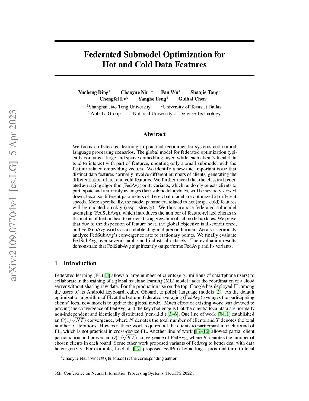 Federated Submodel Optimization for Hot and Cold Data Features