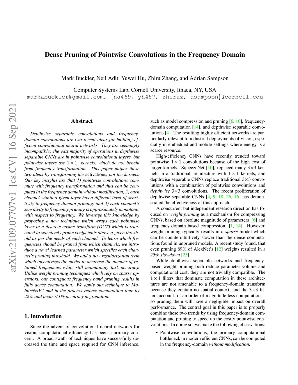 Dense Pruning of Pointwise Convolutions in the Frequency Domain