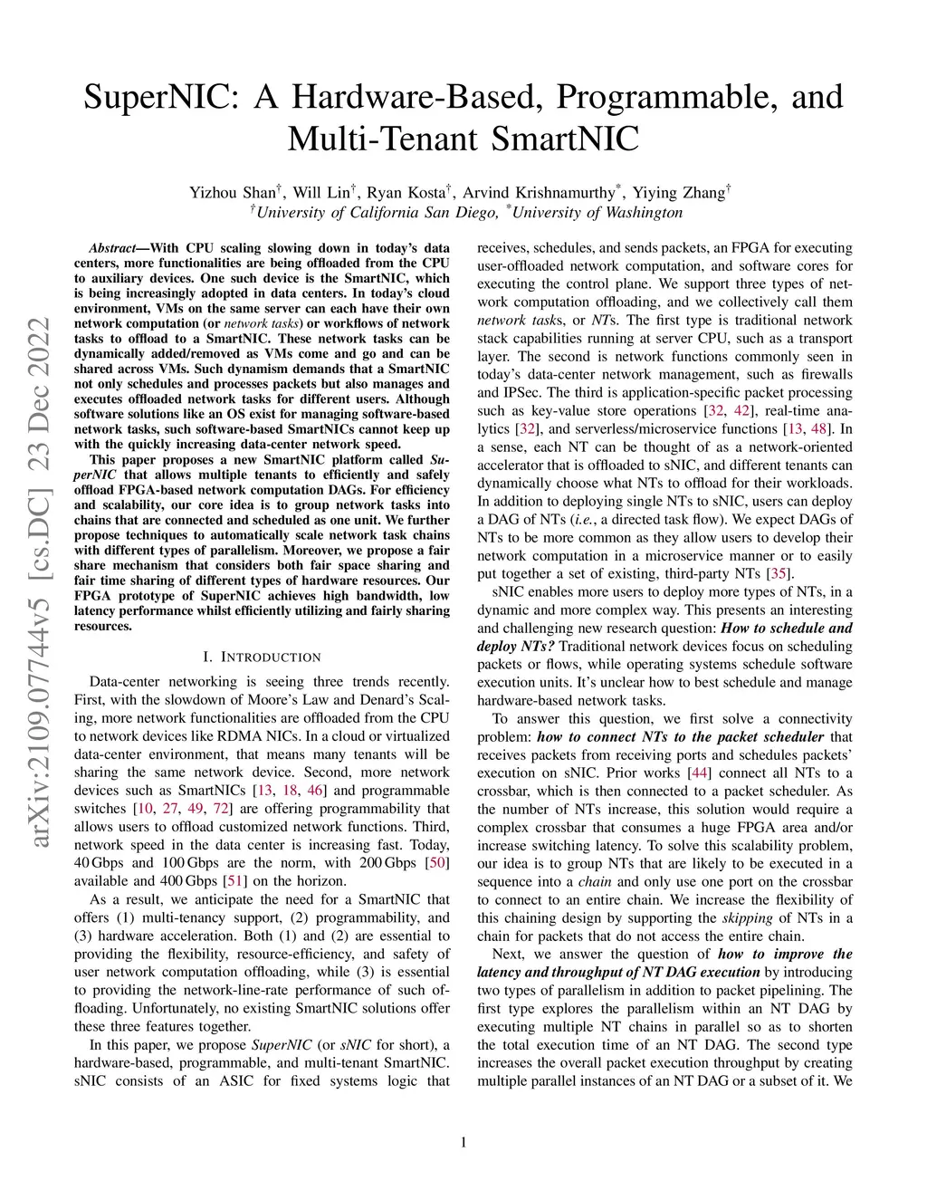 SuperNIC: A Hardware-Based, Programmable, and Multi-Tenant SmartNIC