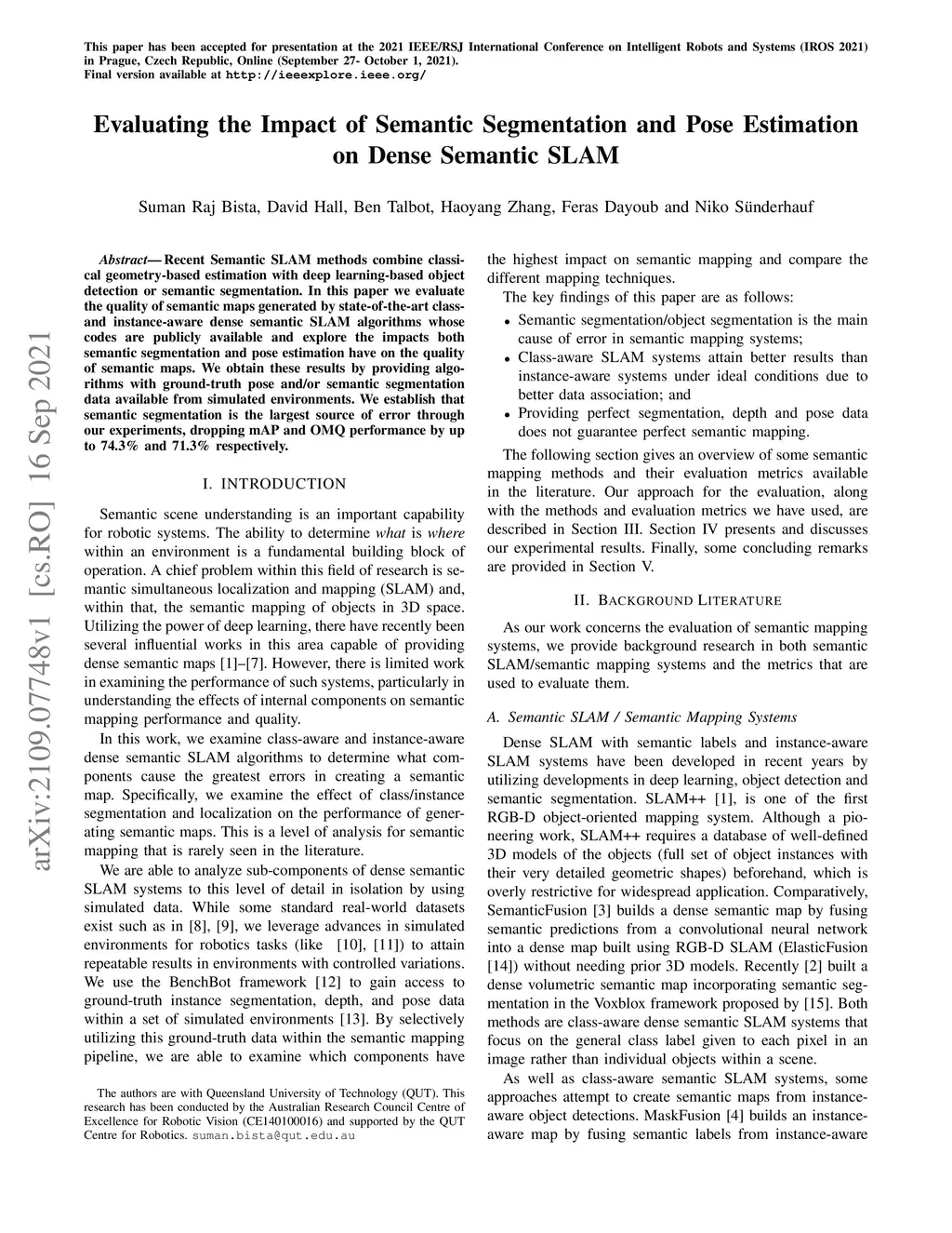 Recent Semantic SLAM methods combine classical geometry-based estimation with deep learning-based object detection or semantic segmentation. In this paper we evaluate the quality of semantic maps generated by state-of-the-art class- and instance-aware dense semantic SLAM algorithms whose codes are publicly available and explore the impacts both semantic segmentation and pose estimation have on the quality of semantic maps. We obtain these results by providing algorithms with ground-truth pose and/or semantic segmentation data available from simulated environments. We establish that semantic segmentation is the largest source of error through our experiments, dropping mAP and OMQ performance by up to 74.3% and 71.3% respectively.