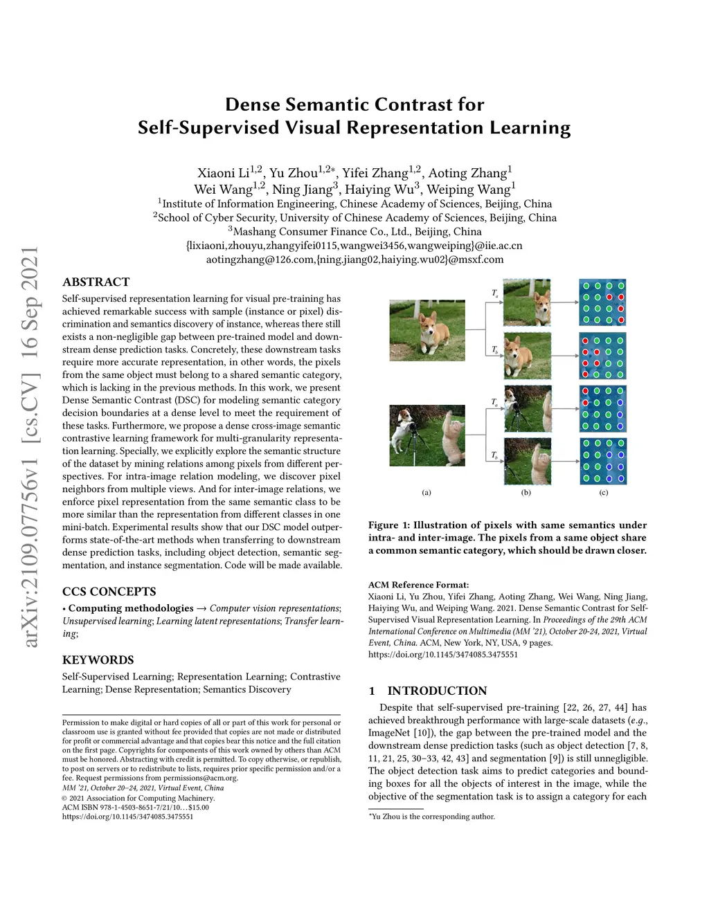 Dense Semantic Contrast for Self-Supervised Visual Representation