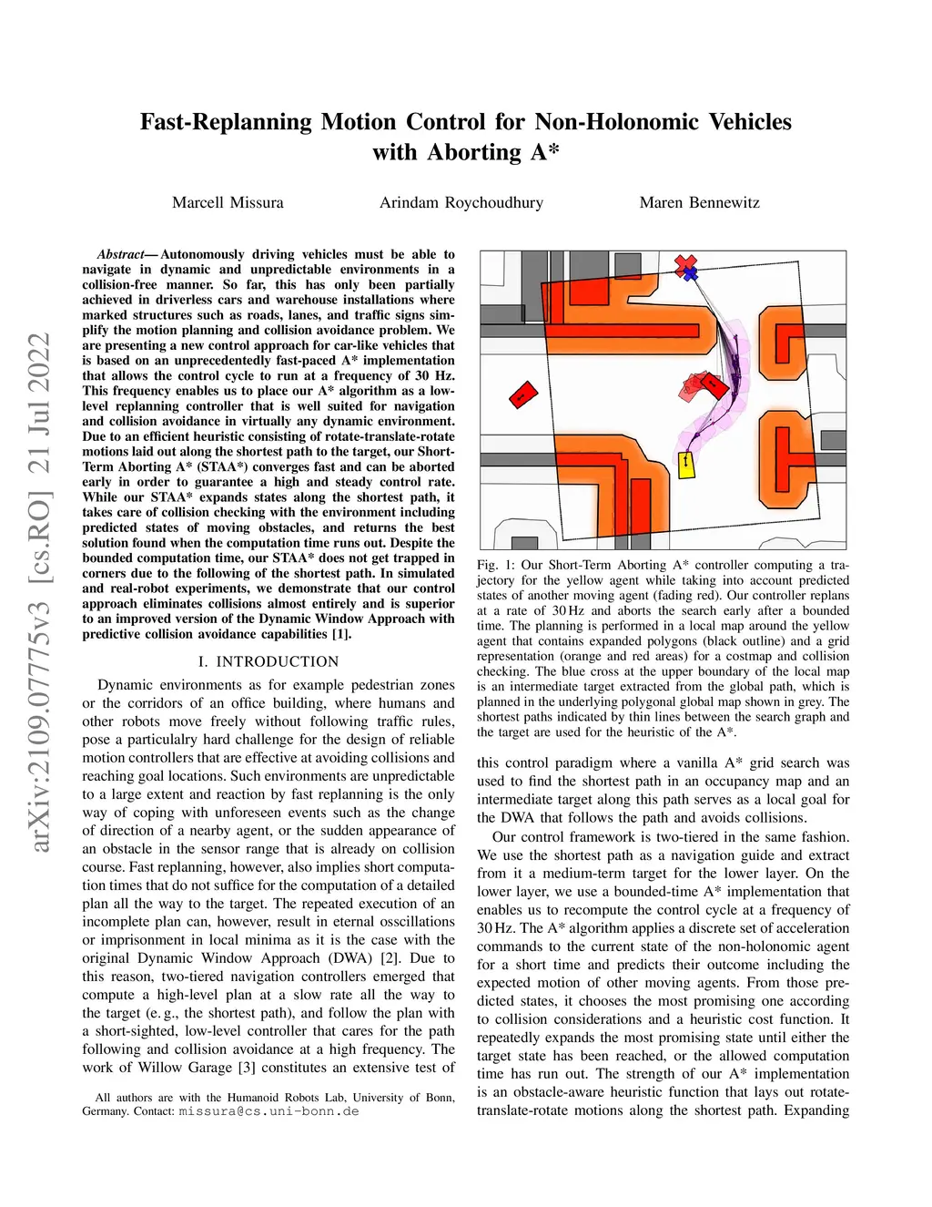 Fast-Replanning Motion Control for Non-Holonomic Vehicles with Aborting