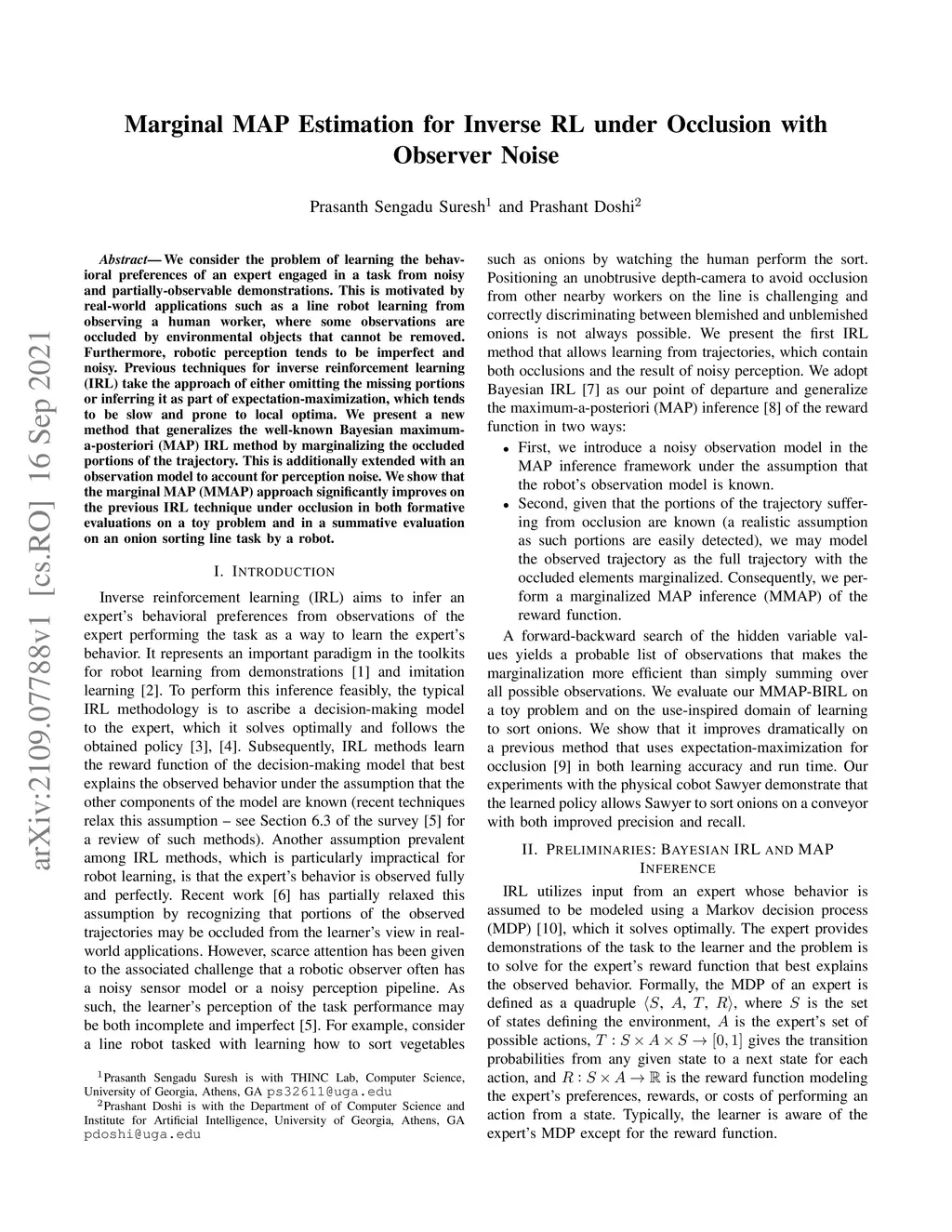 Marginal MAP Estimation for Inverse RL under Occlusion with Observer