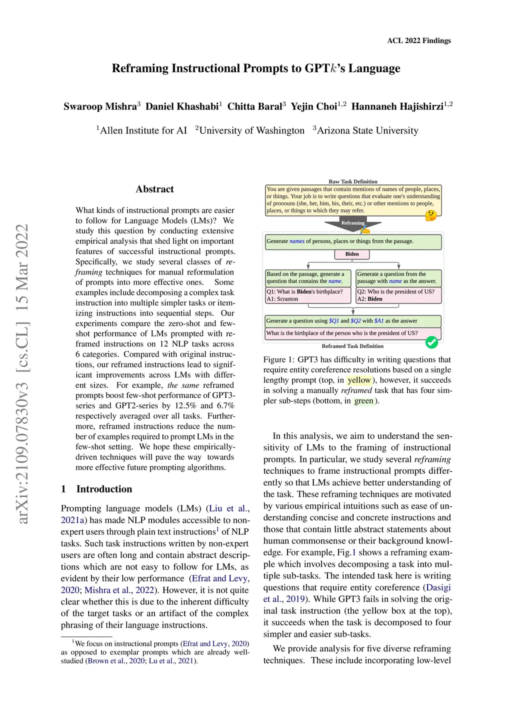 What kinds of instructional prompts are easier to follow for Language Models (LMs)? We study this question by conducting extensive empirical analysis that shed light on important features of successful instructional prompts. Specifically, we study several classes of reframing techniques for manual reformulation of prompts into more effective ones. Some examples include decomposing a complex task instruction into multiple simpler tasks or itemizing instructions into sequential steps. Our experiments compare the zero-shot and few-shot performance of LMs prompted with reframed instructions on 12 NLP tasks across 6 categories. Compared with original instructions, our reframed instructions lead to significant improvements across LMs with different sizes. For example, the same reframed prompts boost few-shot performance of GPT3-series and GPT2-series by 12.5% and 6.7% respectively averaged over all tasks. Furthermore, reframed instructions reduce the number of examples required to prompt LMs in the few-shot setting. We hope these empirically-driven techniques will pave the way towards more effective future prompting algorithms.