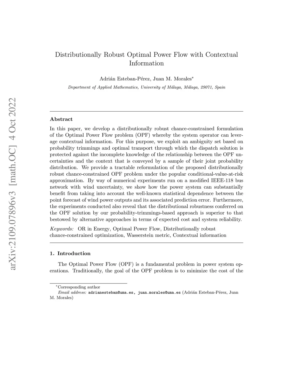 Distributionally Robust Optimal Power Flow with Contextual Information