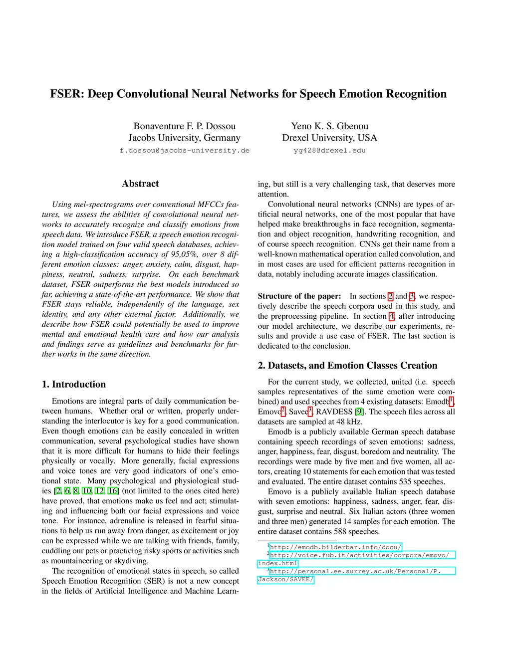 FSER: Deep Convolutional Neural Networks for Speech Emotion Recognition