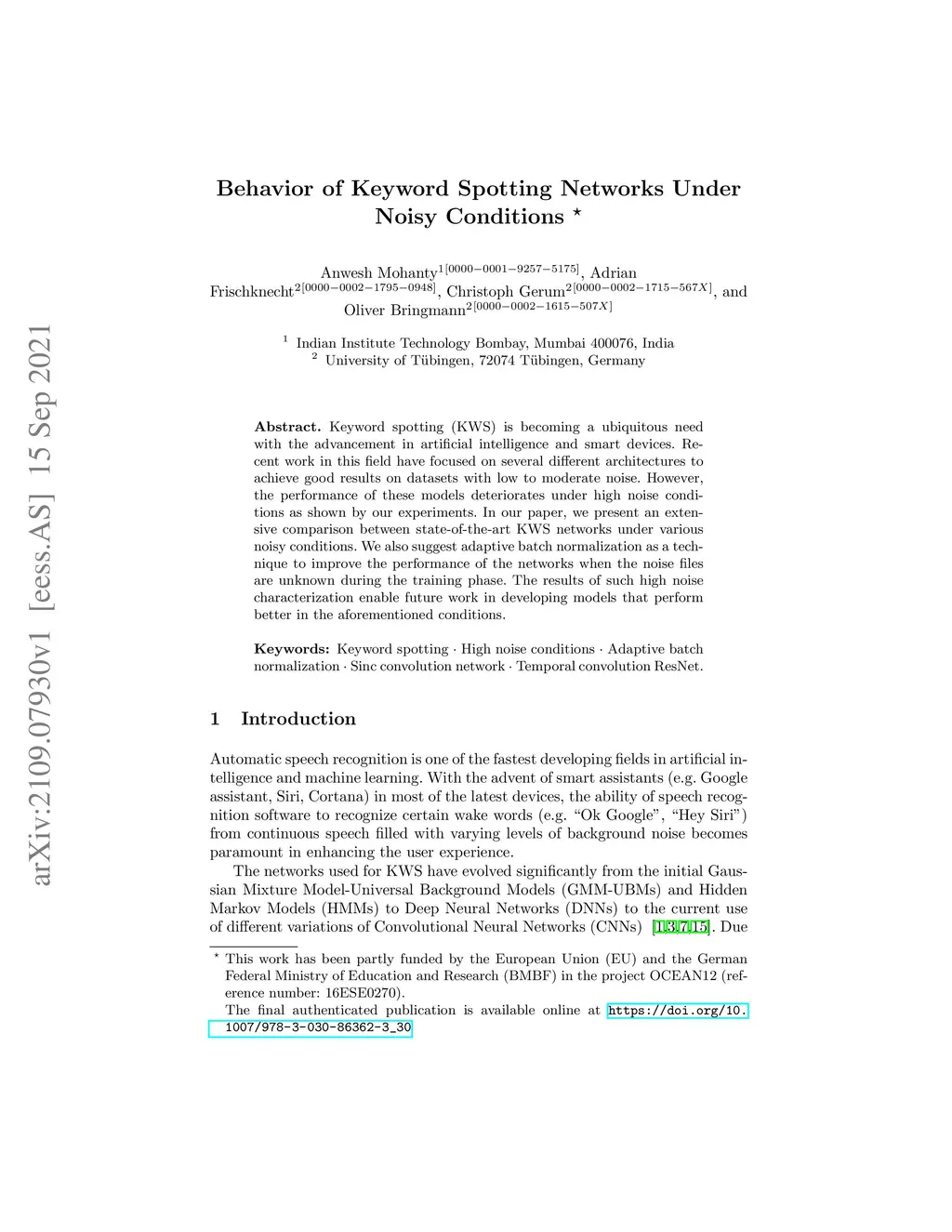 Behavior of Keyword Spotting Networks Under Noisy Conditions