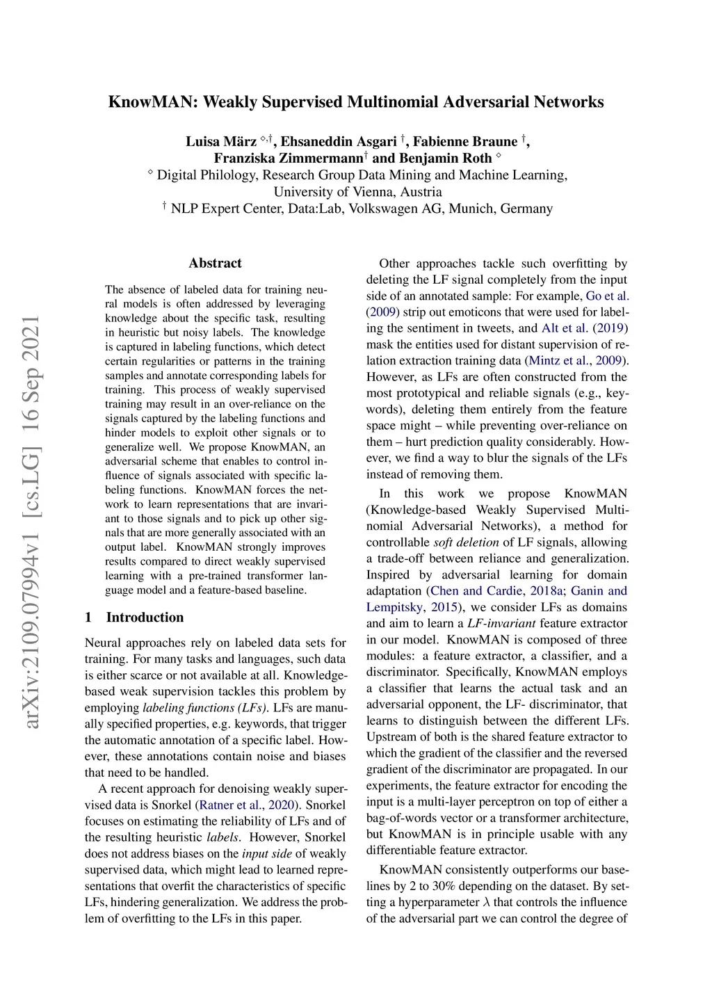 KnowMAN: Weakly Supervised Multinomial Adversarial Networks