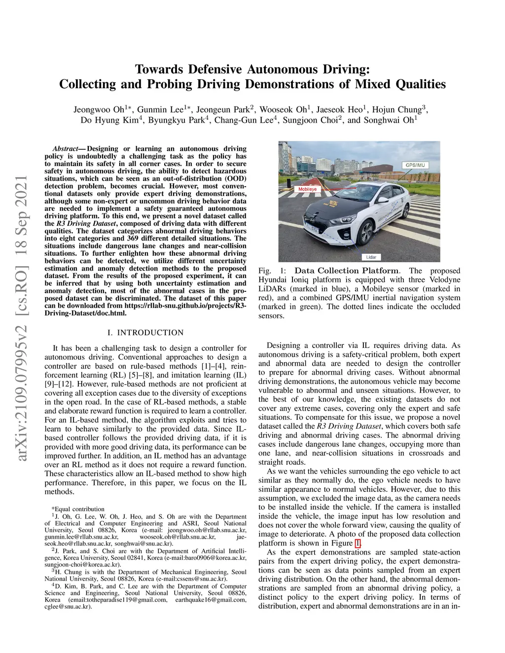 Towards Defensive Autonomous Driving: Collecting and Probing Driving