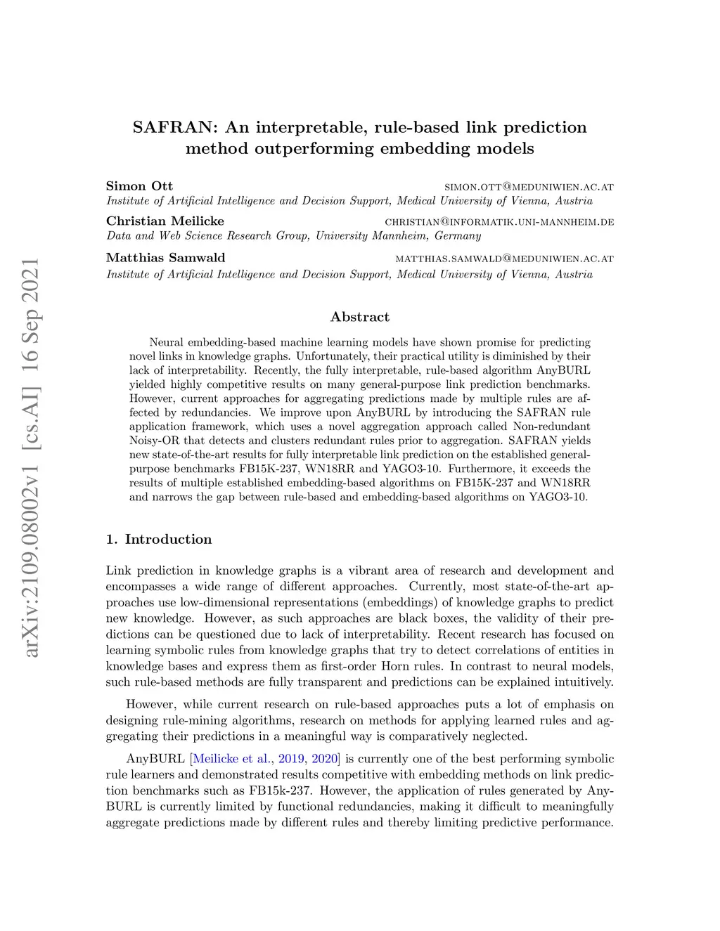 SAFRAN: An interpretable, rule-based link prediction method